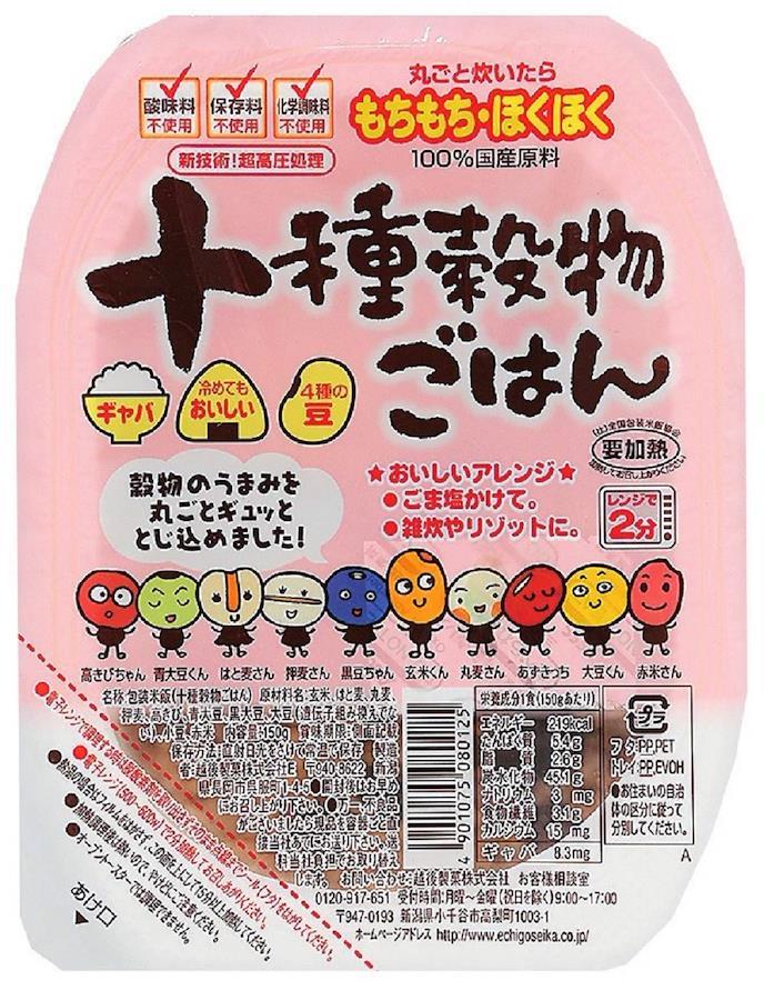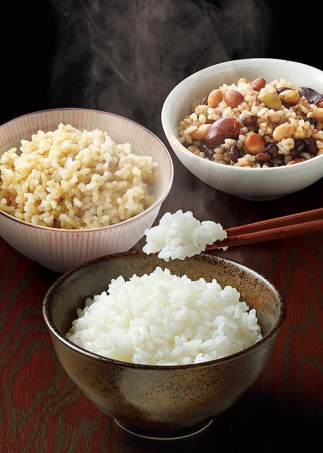 玄米、はと麦、丸麦、押麦、高きび、青大豆、黒大豆、大豆(遺伝子組み替えではない)、小豆、赤米