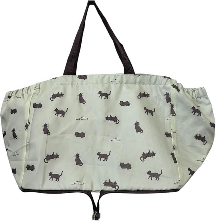 Eco-friendly shopping bag, compatible with shopping carts, insulated, drawstring style, large capacity, compact, lightweight, foldable, stylish, white cat design