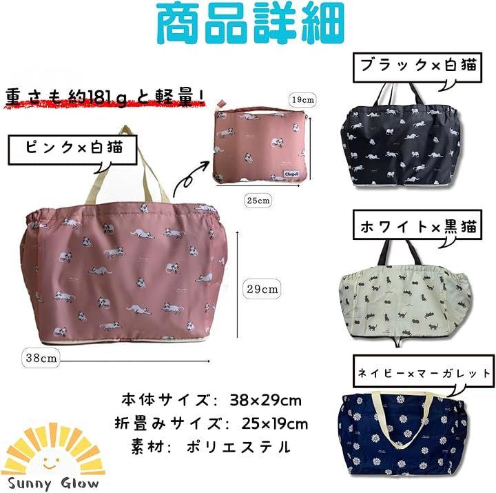「商品詳細」本体サイズ:38x29cm、折畳みサイズ:25x19cm、素材:ポリエステル。