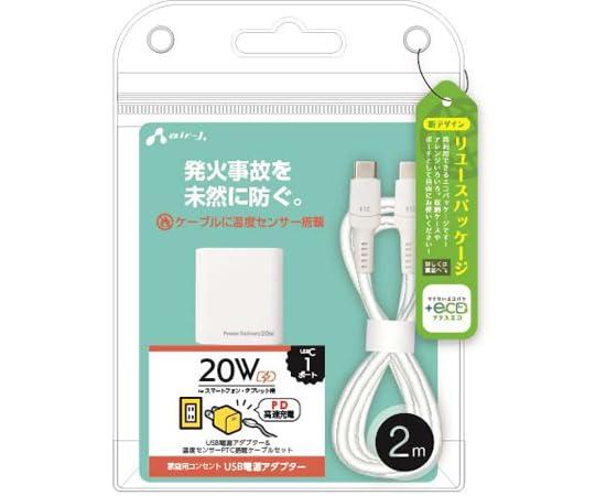 【+ECO】PD充電器+発火を防ぐPTCケーブル2m ホワイト AKJEPDC2M [USB Power Delivery対応 /20W]