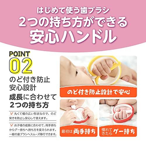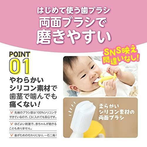 ●歯茎で噛んでも痛くないやわらかシリコンブラシです。●両面ブラシで磨きやすい。●幅広形状で喉つきせず安心です。●そのまま置いても先端部がつかないから衛生的です。●最初は両手持ちで磨き、慣れてきたらグー持ちで。●6ヵ月頃~歯の生え始め●紫外線消毒:〇●電子レンジ消毒:〇●煮沸消毒:〇●薬液消毒:×