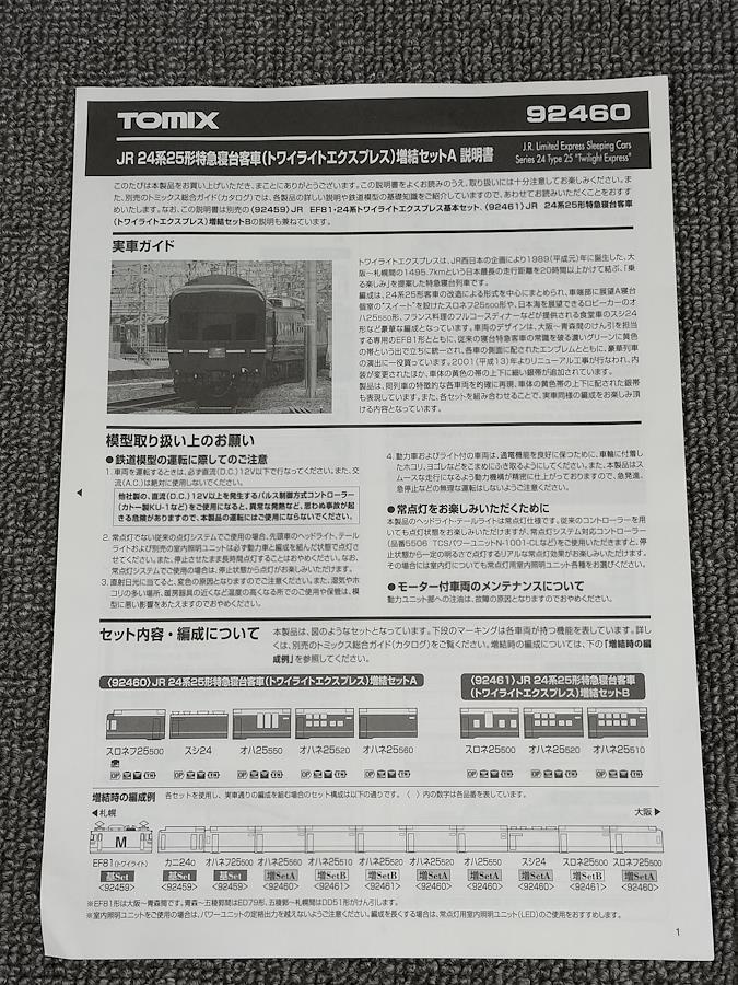 ■特徴・備考基本増結フルセット 客車全車室内灯装備済み(電球色)