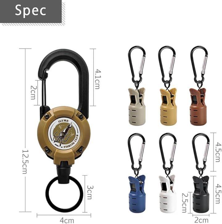 「商品詳細」入数:1個(伸縮式ルアーバックル1個+フックカバー6個)、サイズ:画像参照、カラー:ホワイト、ブラック、カーキ、グリーン、素材:ABS樹脂