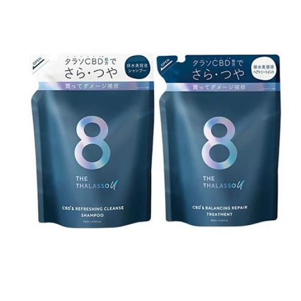 製品の特徴●8ザタラソ ユー CBD*&リフレッシング クレンズ 美容液シャンプー(8 THE THALASSO u CBD & REFRESHING CLEANSE SHAMPOO)●海洋由来美髪成分と癒し髪成分を配合した「タラソCBD処方」の保水美容液シャンプー。●保水して、硬くなってしまった髪と頭皮を柔らかくほぐすことで、性別問わず使いやすい理想の「さら・つや髪」が叶うユニセックスラインです。●キメ細かい泡立ちのシャンプーは、頭皮の汚れをリフレッシュするようにスッキリ落とします。●水分と油分のバランスが整った、艶やかでさらさらな美髪へと導きます。●心が穏やかに満たされる「ムスキーサボンの香り」。●無着色・合成色素不使用・無鉱物油・ノンアルコール・パラベンフリー・サルフェートフリー・ノンシリコン。●販売名:エイトザタラソ ユー リフレッシング シャンプー