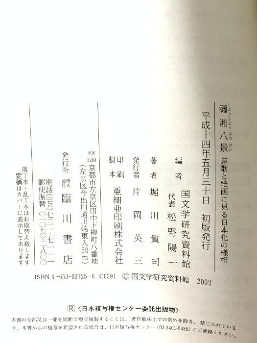 Eight Views of Xiaoxiang: Aspects of Japanization in Poetry and Painting (Original Text Reading Seminar 8) Rinkawa Shoten, Takashi Horikawa