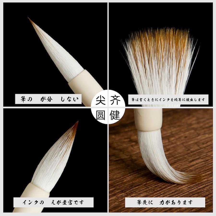【仕様と素材】太筆:穂長4.8cm、穂径1.2cm,木製軸+ホワイトプラスティック; 細筆:穂長2.0cm、穂径0.6cm,木製軸+ホワイトプラスティック。【習得しやすい】栄槿堂は毛筆製造において167年の歴史を有しており、私たちはどの段階の書写者がどのような毛筆を必要としているかを理解しています。初心者は通常、私たちの毛筆を使用すると技術を簡単に習得できます。毛筆はより良い弾性と柔軟性を提供し、初心者が漢字やアートフォントをより正確に書写するのに役立ちます。良い練習体験を提供し、学習の興味を引き出します。初学者が高品質なツールを使用することで、書道への興味を容易に抱くことができ、学習の意欲を高めるのに役立ちます。【書きやすい】栄槿堂の毛筆は紙上でより滑らかに移動し、初学者が書写の練習を行う際の快適さと滑らかさを助けます。この滑らかさは、書法作品の美しさを形成するのに役立ちます。高品質な毛筆はより優れた線の制御を提供できます。これは初学者が毛筆の筆画と線をより正確に掌握するのに非常に重要です。【耐久性】栄槿堂の毛筆は通常、より耐久性があり、変形や抜け毛がしにくいです。これは初学者にとって経済的で便利な選択肢です。私たちの書道筆は楷書、行書、草書、隷書、小篆など、さまざまな書体での書写に使用できます。さまざまな書法スタイルを柔軟に試すことができ、将来の学習に基盤を築くのに役立ちます。【免責事項】メーカーによる商品リニューアルに伴いパッケージが変更が行われた場合、新パッケージでお届け致します事ご了承願います。