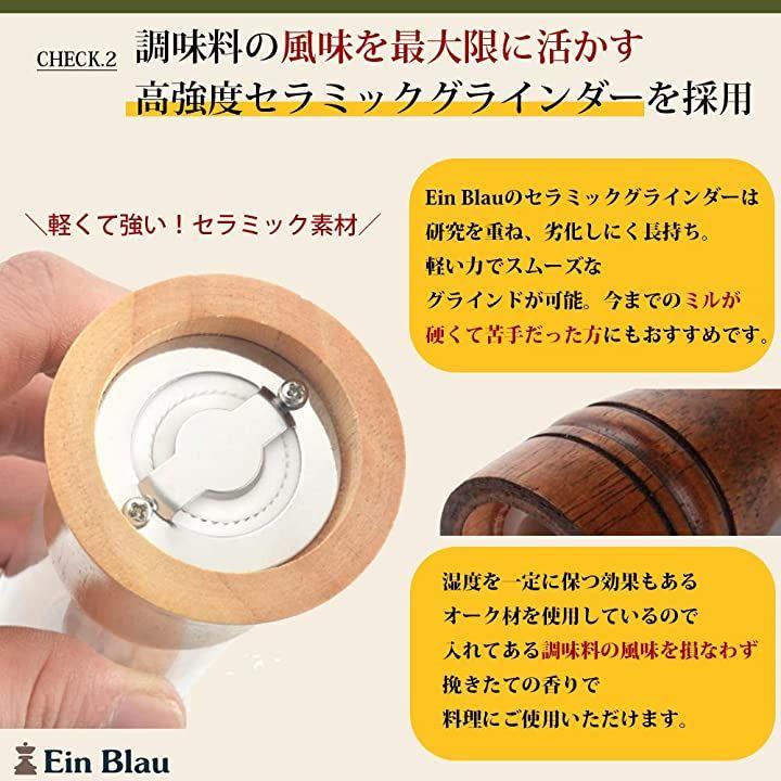 ・サイズ:5.5x5.5x22cm 本体重量:210g 素材・材質:本体/オーク材、グラインダー/セラミック、シャフト/ステンレス 食品衛生法規格準拠