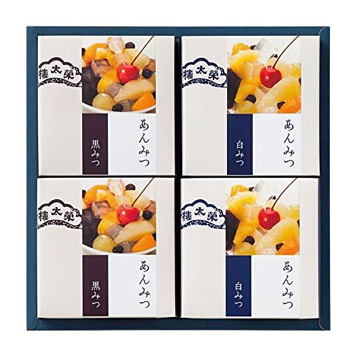原材料名(本体):砂糖、寒天、もも(白もも、黄もも)、洋なし(ラフランス)、みかん、ぶどう、パインアップル、さくらんぼ、赤豌豆、酸味料、ゲル化剤(増粘多糖類)、乳酸Ca、酸化防止剤(V.C)、ラック色素原材料名(白みつ):砂糖、水飴、原材料名(黒みつ):砂糖、黒砂糖(沖縄産)、水飴、原材料名(こしあん):砂糖、小豆(北海道産)、還元水飴、寒天特定原材料(アレルギー表示):使用しておりません・もも(推奨)あんみつ 4個入用途:内祝い お返し お菓子 スイーツ 和菓子 老舗 銘菓 業務用 法人 周年祭等に【重要】メーカーによる商品リニューアルに伴いパッケージ(内容量も含む)変更が行われた場合、新パッケージでお届け致します事ご了承願います。