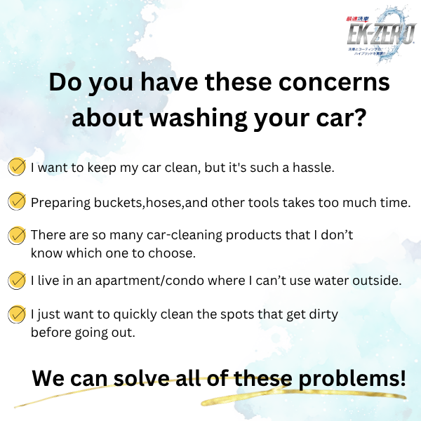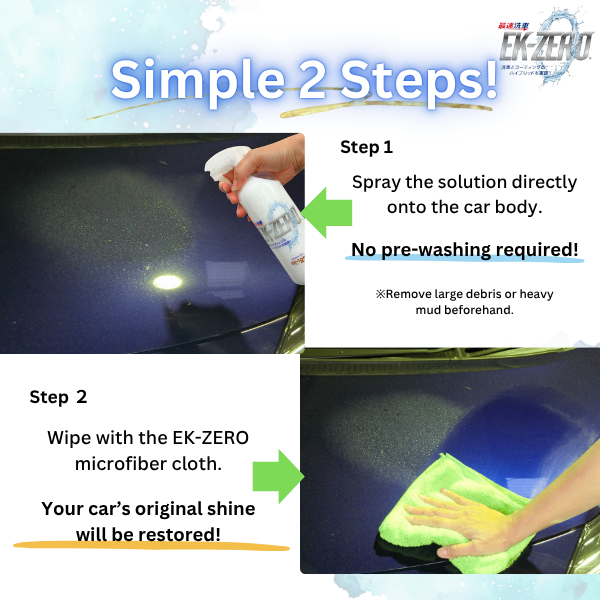 【最短5分】小型自動車は5分でピカピカに!EK-ZERO1本あれば、事前の水洗いも、ホースやバケツなど洗車用品のグッズを用意する時間も必要ありません!車の汚れが気になった時にすぐ洗車する事が可能。