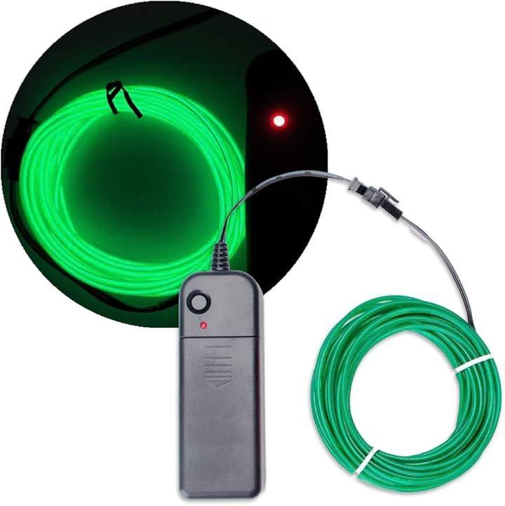 「商品内容」 電池ボックス付EL発光ネオンワイヤー カラー(5mタイプ):グリーン/ピンク/ブルー/イエロー/ホワイト (1mタイプ)イエロー+オレンジ+パープル+ブルー+ホワイト5色1セット 電池ボックス付 *電池本体は付属しません