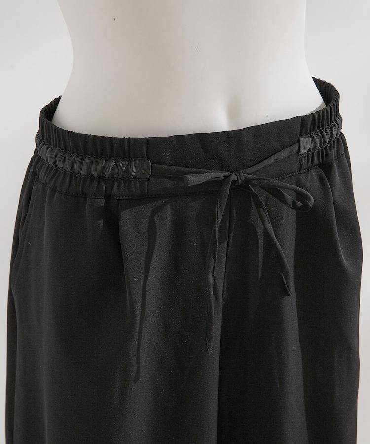 【ディティール】ファスナーの明きなしのプルオンタイプなので履きやすさ◎お腹まわりもスッキリで、ポケットも付いているので履きやすさも抜群!ウエストはゴムですが、同色系のグログランテープの中に共布リボンを通したデザインが可愛いポイント。前中心には、ゴムを入れていないのでスッキリとしたシルエットが叶います。