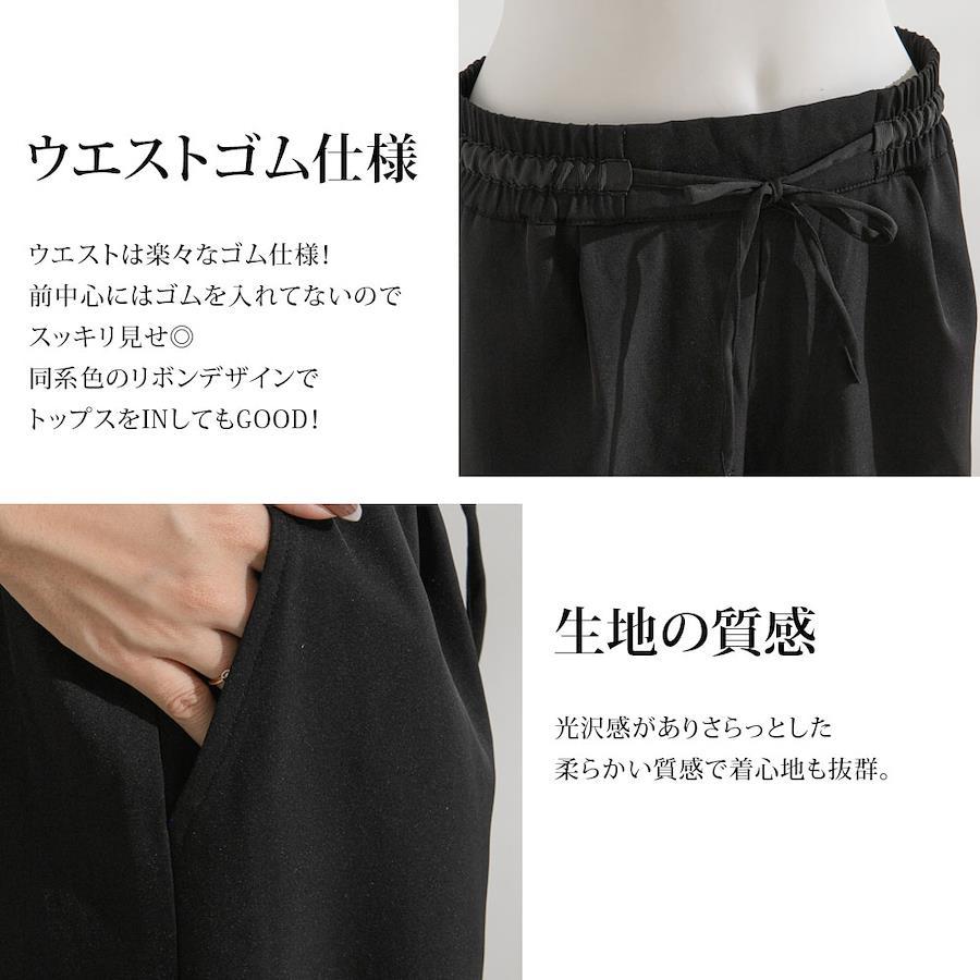 【スタイリング】同素材のベストと合わせたセットアップコーデがおすすめ◎通勤にも使える綺麗目コーデやカットソー合わせでカジュアルダウンのコーデにも活躍!トップスを前インしてリボンを見せコーデもおすすめです。**********************透け感:なし裏地:あり伸縮性:ややあり光沢感:あり生地の厚さ:普通**********************《透け感》なし 《生地の厚さ》普通 《裏地》あり 《伸縮性》ややあり《生産国》中国
