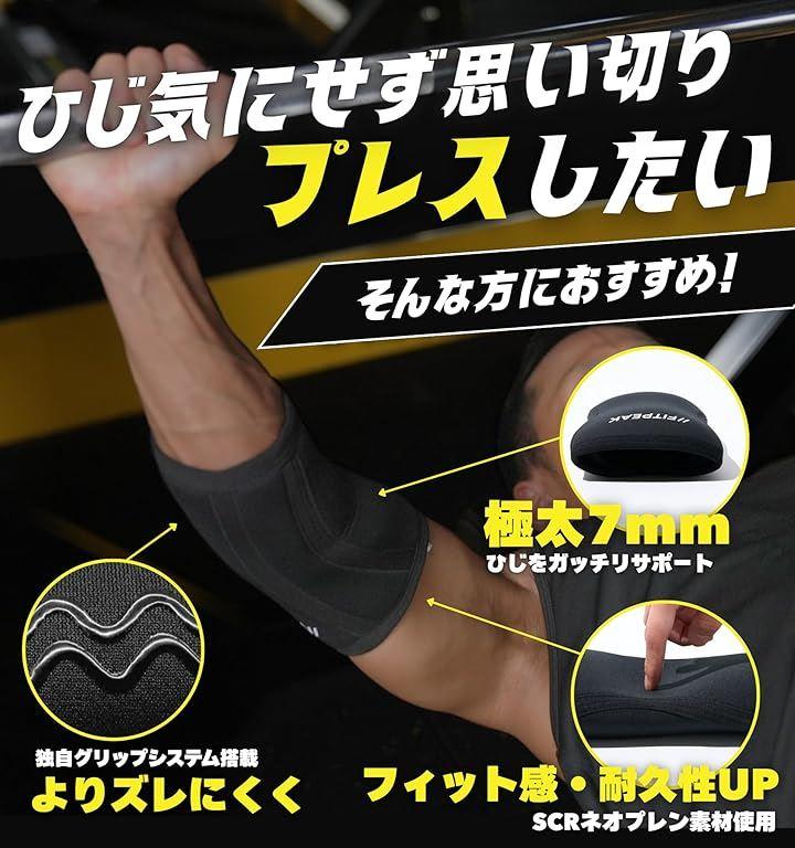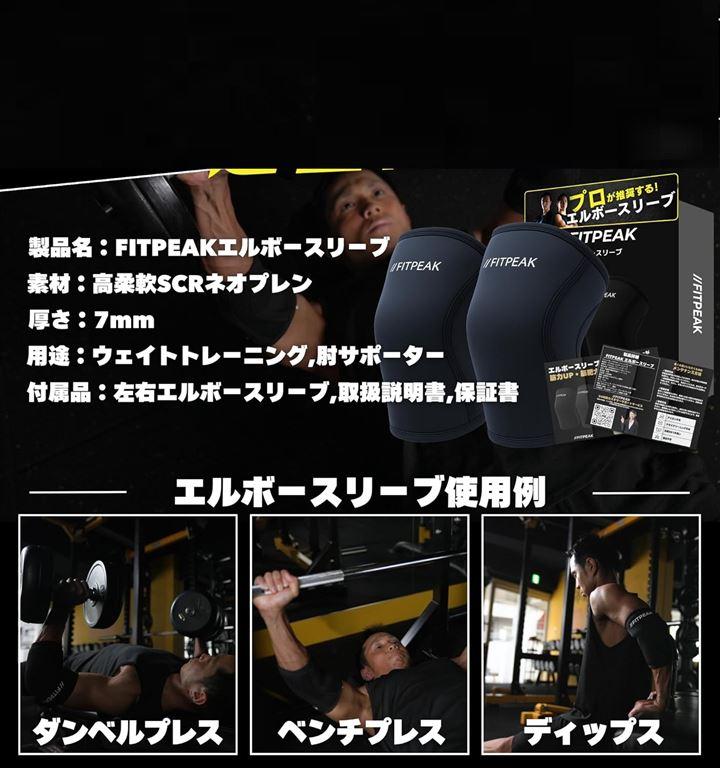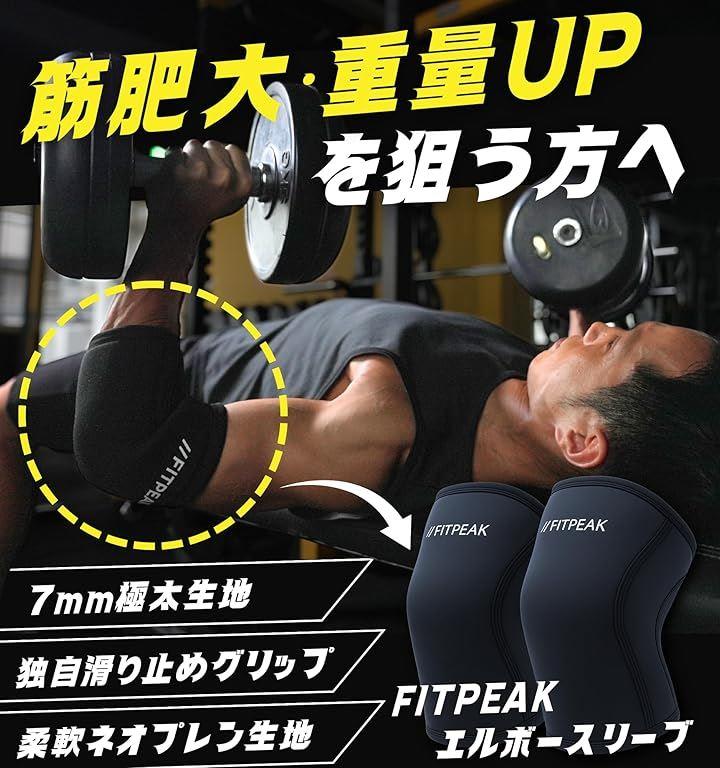 「重量UP・筋肥大をサポート」FITPEAKは、開発者である私自身、8年以上筋トレを行っており、その経験から、より重量UP、菌肥大にフォーカスしたエルボースリーブを作ろうと思い、この製品が生まれました。