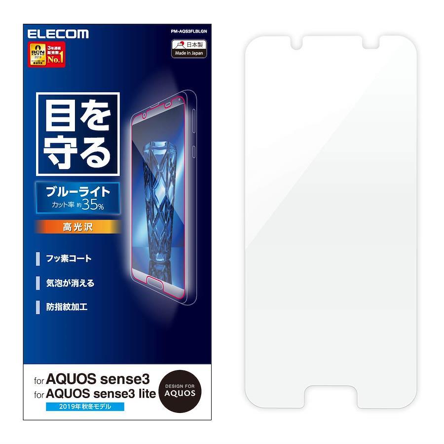 ■ディスプレイを見続ける機会が多い現代人の目を考えて開発。液晶ディスプレイが発する光の中の青い部分「ブルーライト」を大幅にカットするAQUOS sense3、AQUOS sense3 lite用の液晶保護フィルムです。■時間の経過とともに気泡が目立たなくなる特殊吸着層を採用したエアレスタイプです。■小さな気泡ができたときには、指などで押し出すことで気泡を抜くことができます。■指紋・皮脂汚れが付きにくく、残った場合でも簡単に拭き取れる指紋防止加工を施しています。■つやのある高光沢タイプで、液晶画面を鮮やかに彩ります。■液晶ディスプレイが発する光の中の青い部分「ブルーライト」を約35%カットする液晶保護フィルムです。■※ブルーライトは目の角膜や水晶体で吸収されずに網膜まで到達し、網膜の機能低下を引き起こす場合があると言われています。■ブルーライトを効率的にカットするだけでなく、色調をできるだけ変えずに自然に見えるようフィルムを設計しています。■表面硬度3Hのハードコート加工により、フィルム表面のキズを防止します。※表面硬度は実力値です。■貼り付け面にシリコン皮膜をコーティングし、接着剤や両面テープを使わずに貼り付け可能な自己吸着タイプです。貼りやすく、貼り直しも可能です。■フィルムに抗菌機能を施し、細菌の繁殖を防ぎます。■端末の形状に合わせたサイズにカット済みなので、パッケージから取り出してすぐに使用可能です。※液晶画面の端が湾曲しているため、湾曲部分は覆わない仕様にしています。