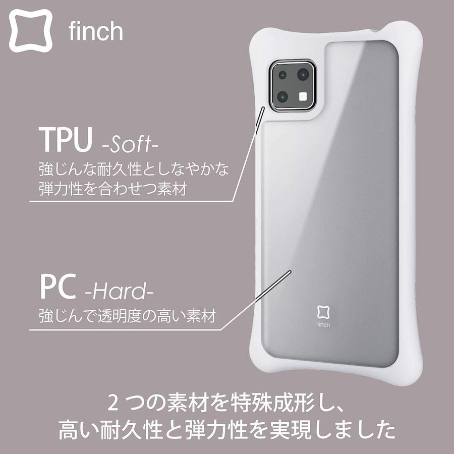 【 説明 】■ ケース四隅のカドが手にフィットして持ちやすく、ほどよく手になじむふんわりホールドタイプのAQUOS sense4、AQUOS sense5G用ハイブリッドケースfinchです。■ 衝撃を吸収するTPU素材とポリカーボネート素材の2種の素材を特殊成形し、強靱な耐久性としなやかな弾力性を合わせ持ったケースです。■ ほどよい硬さのTPU素材が、手にフィットし握りやすく滑りにくく安心です。■ ケース四隅のエアクッションが高い耐衝撃性を実現します。■ ケースを装着したままで液晶画面の確認、本体の操作、充電・通信ケーブルの接続が可能です■ 液晶画面端をケースが覆うため、液晶面を下に向けて置いても傷が付きにくいです。■ 背面カメラ周りを覆い、カメラへの傷を防ぐ、カメラレンズ保護設計です。