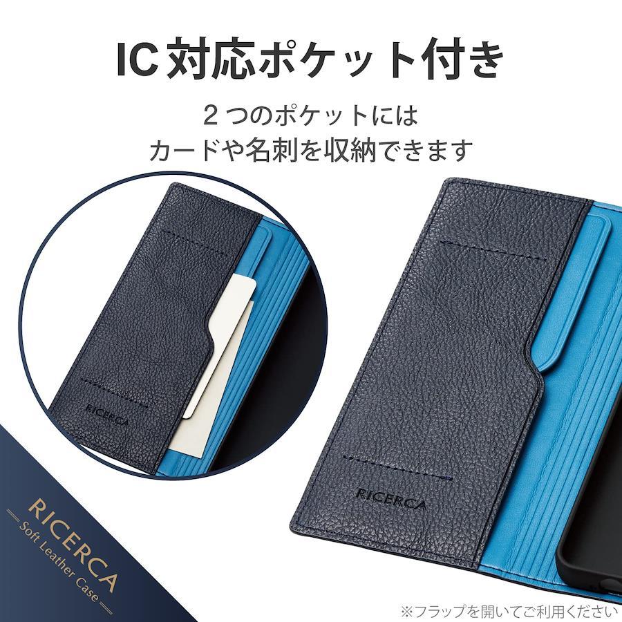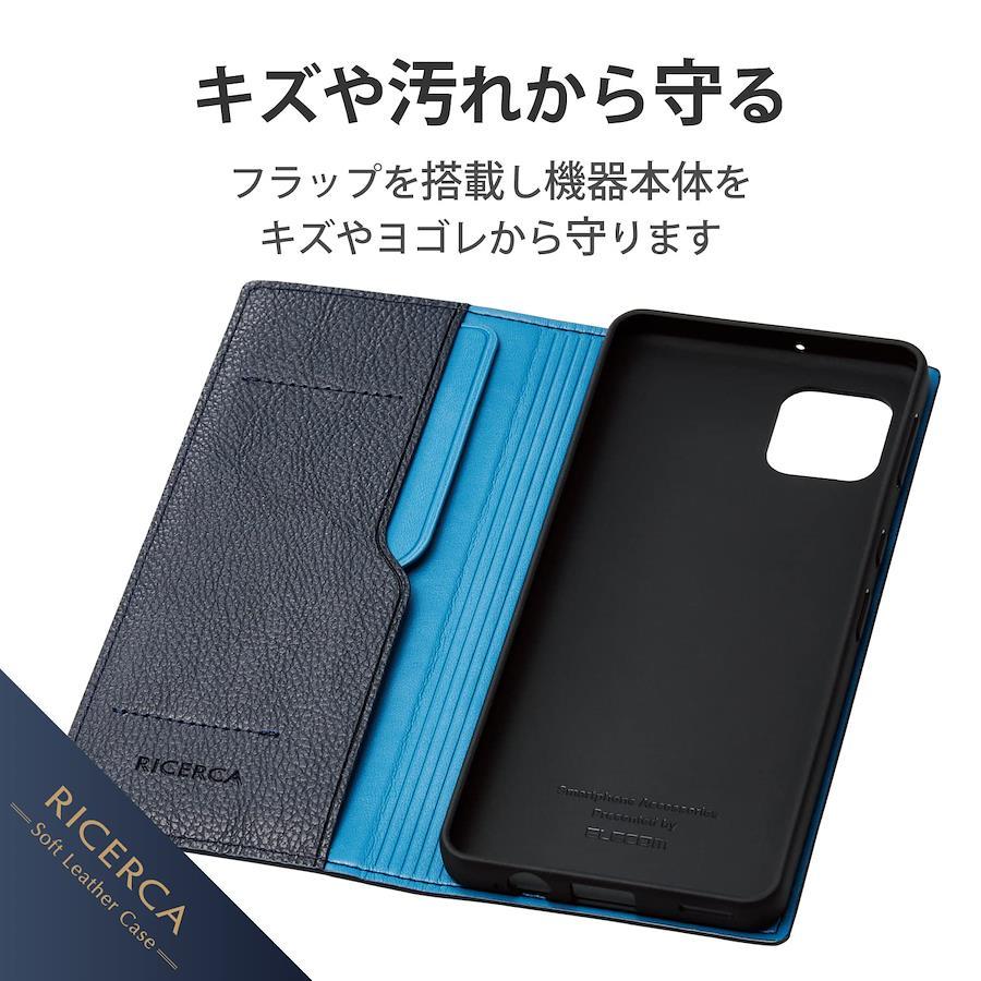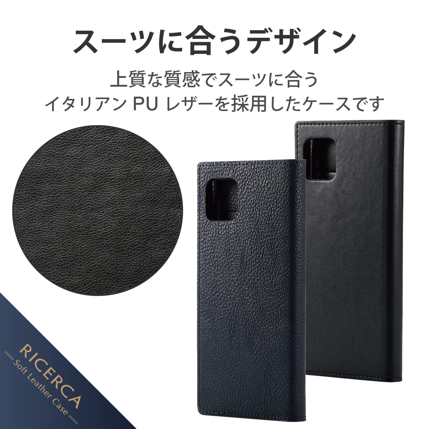 ジャケットに美しく収まるよう、スマートにデザインされたAQUOS sense6(SH-54B/SHG05)用ソフトレザーケース(手帳型)です。