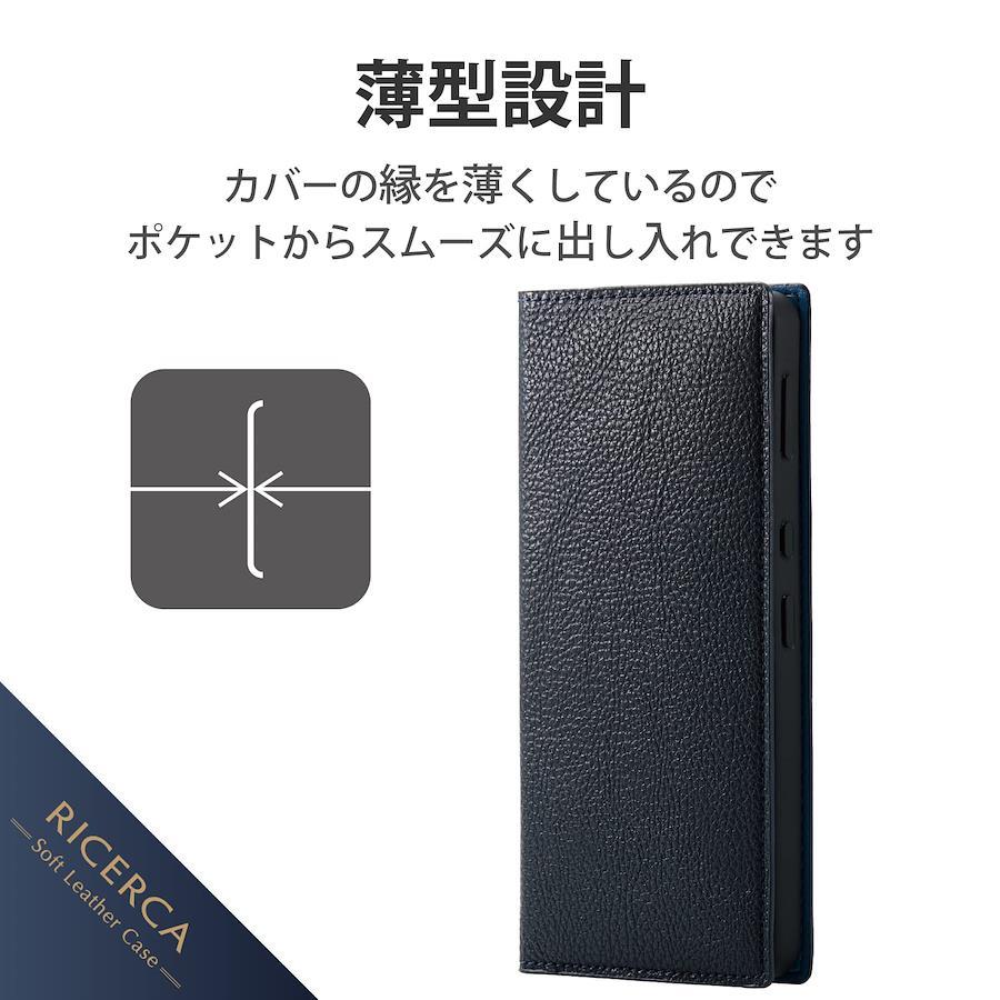 ■ ジャケットに美しく収まるよう、スマートにデザインされたAQUOS sense6(SH-54B/SHG05)用ソフトレザーケース(手帳型)です。
