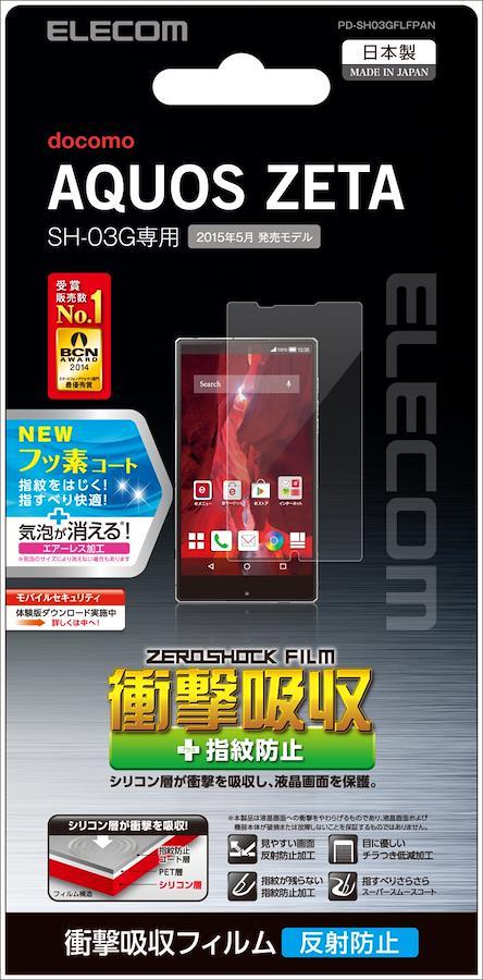ELECOM AQUOS ZETA SH-03G LCD protective film, fingerprint prevention, shock absorption, PD-SH03GFLFPAN