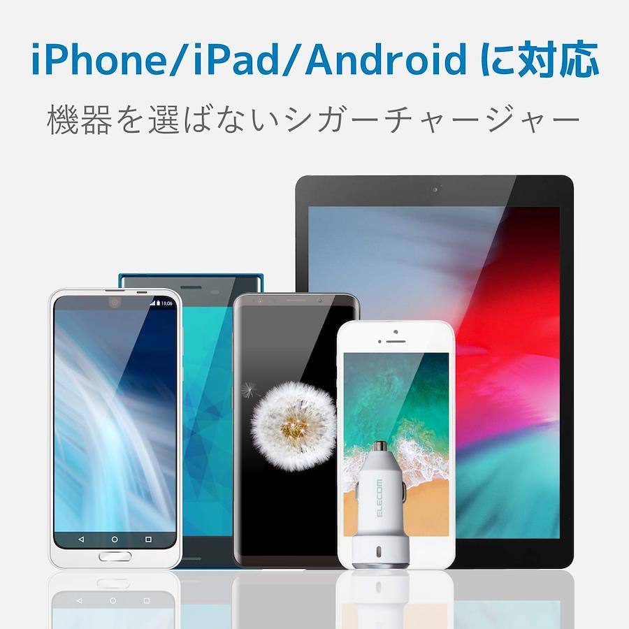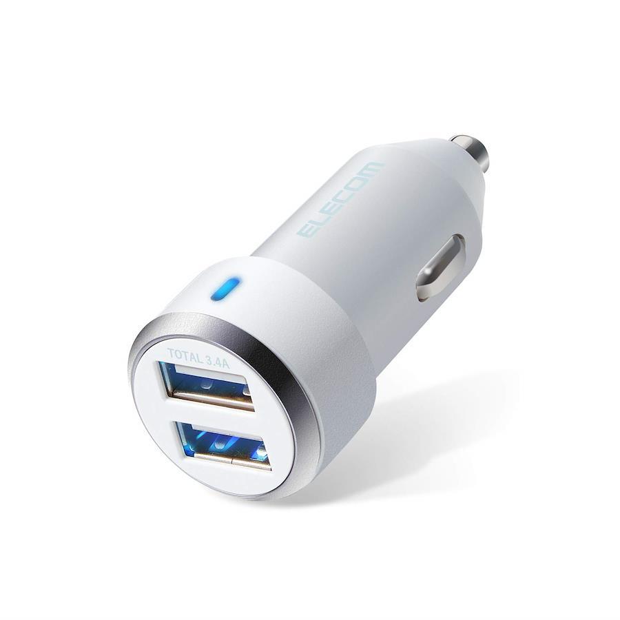 自動車のアクセサリソケットに差し込むことで、スマートフォンやタブレットを車で充電できる車載充電器です。