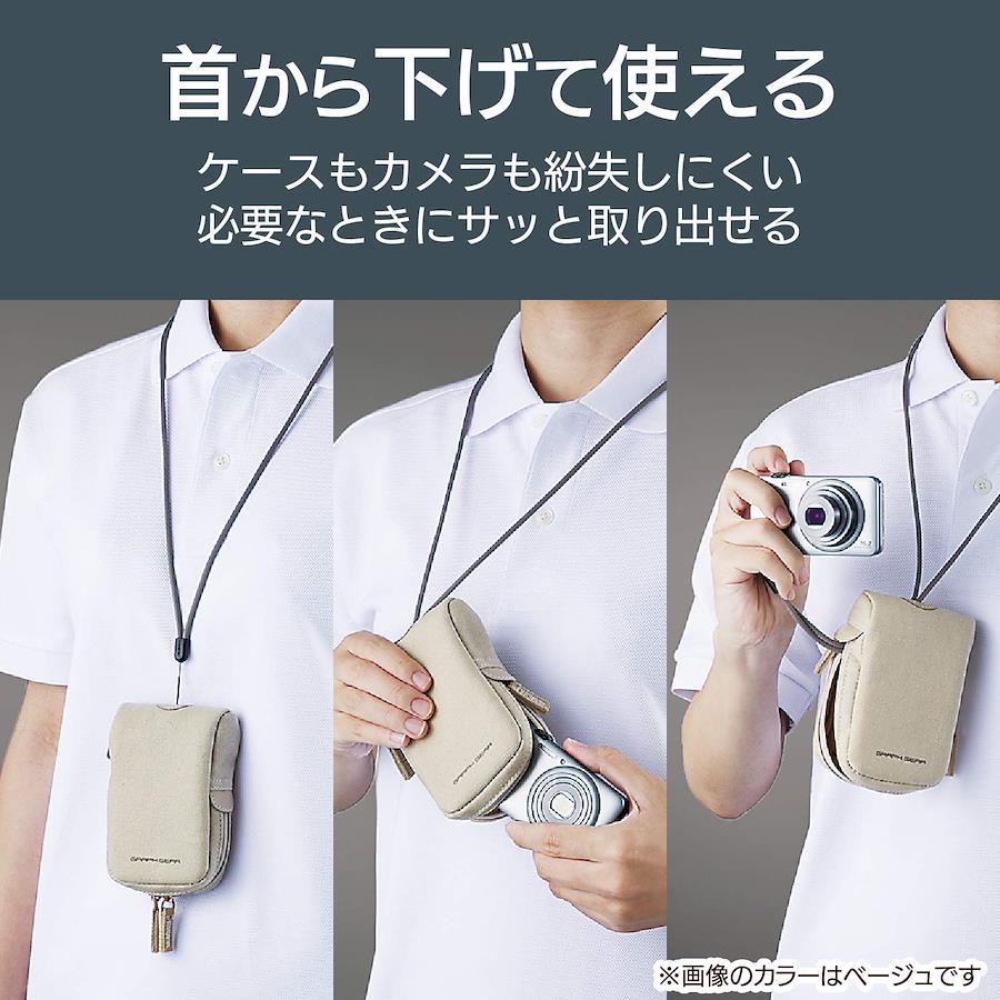首からさげたまま使用できるので、ケースもカメラも紛失しにくい!カメラに装着できる首ひも付きのデジタルカメラケース。