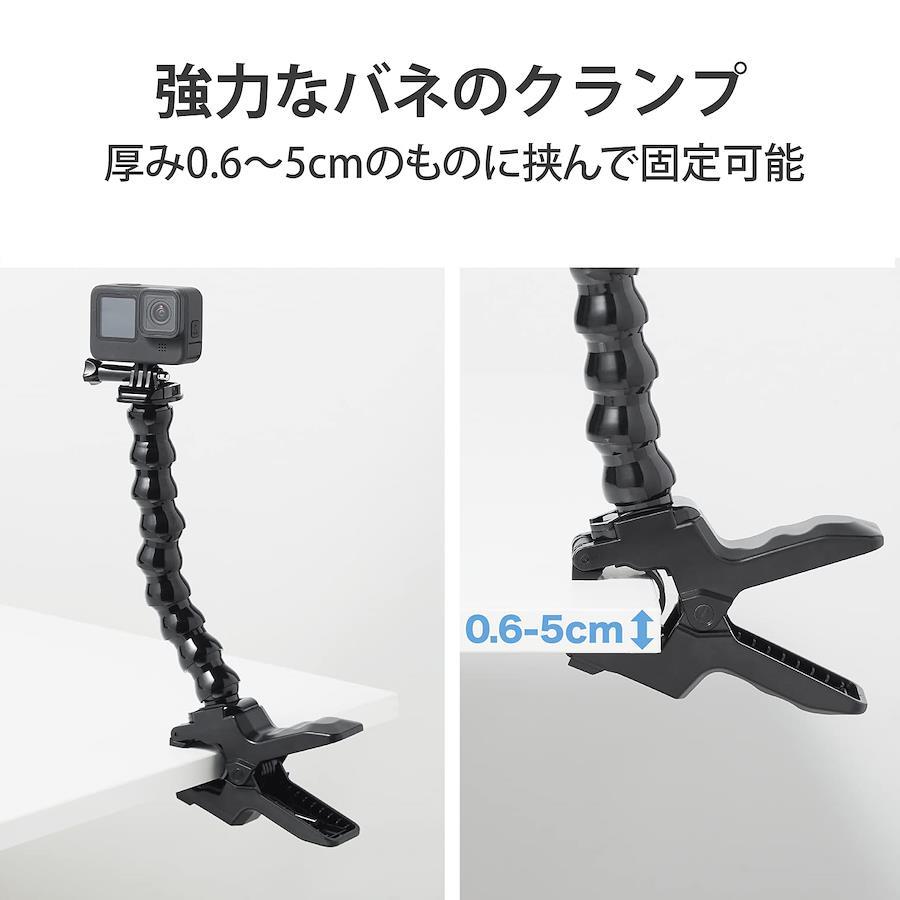自由なアングルで撮影でき、強力なクランプで固定できるグースネックタイプのGoPro HERO12/11/10/9/8/MAXなどのアクションカメラ用マウントです。強力なバネのクランプで、厚み0.6-5cmのものに挟み込んで固定できます。クランプからアームを取り外し、クランプに直接クイックリリースバックルマウントを取り付けることができます。クランプからアームを取り外し、クランプに直接クイックリリースバックルマウントを取り付けることができます。