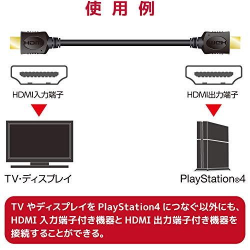 【 説明 】■PlayStation(R)4とテレビを接続できる、“イーサネット対応HIGH SPEED HDMIケーブル"です。■4K2K、3DフルHDに対応した、HIGH SPEED with Ethernet認証済みの“イーサネット対応HIGH SPEED HDMIケーブル(カテゴリー2)"です。■HDMI出力端子を搭載したゲーム機(PlayStation(R)4、PlayStation(R)3、Xbox One、Xbox 360、Wii U(TM))の接続におすすめです。■1本のケーブルで、映像信号と音声信号をデジタルのままで高速伝送するだけでなく、イーサネット信号の双方向通信を実現します。■100Mbpsのイーサネット通信を実現する、HEC(HDMIイーサネットチャンネル)に対応しています。■デジタル音声をテレビなどの表示機器からAVアンプなどの出力機器へ伝送できる、ARC(オーディオリターンチャンネル)に対応しています。■3DフルHD(1080p×2画面)、4K2K(4096×2160ドット)に対応しています。■色深度は従来の24bit(Full Color:フルカラー)から、30/36/48bit(Deep Color:ディープカラー)まで対応し、より豊かな色表現が可能です。■サビなどに強く信号劣化を抑える金メッキプラグを採用しています。■外部ノイズの干渉から信号を保護する3重シールドケーブルを採用しています。■コネクタ部にもノイズを軽減する金属シェルコネクタを採用しています。■外部ノイズの影響を受けにくい、ツイストペア構造を採用しています。■EUの「RoHS指令(電気・電子機器に対する特定有害物質の使用制限)」に準拠(10物質)しています。
