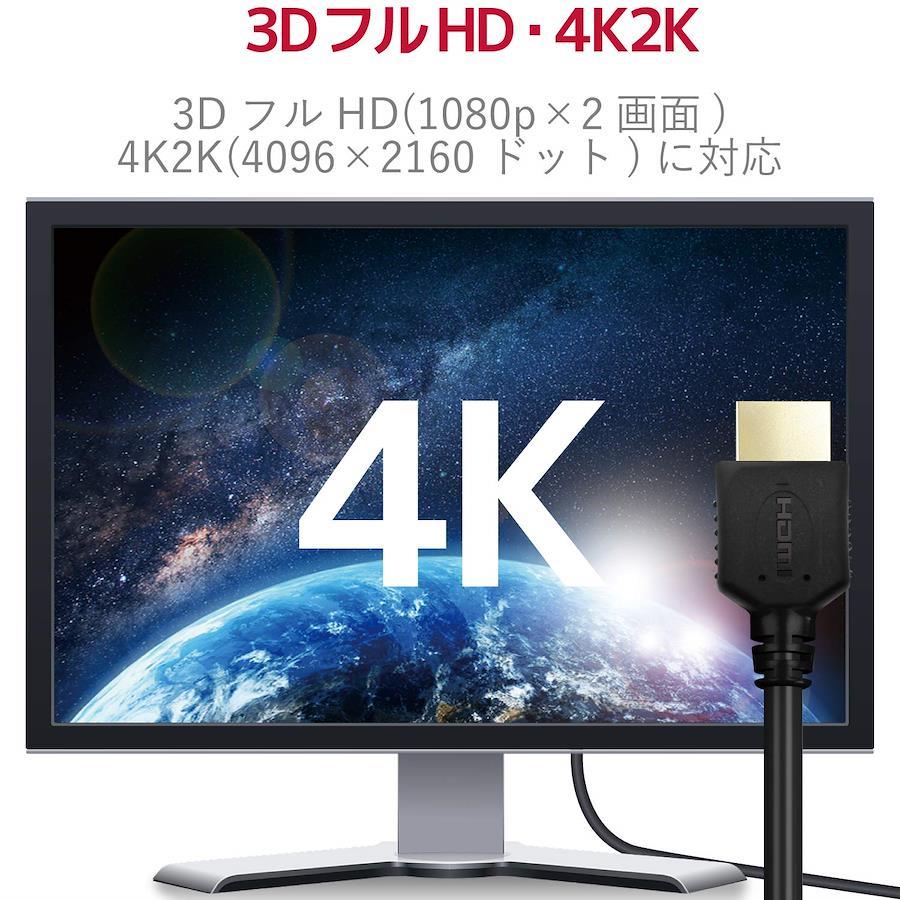 【 仕様 】■コネクタ形状:HDMIプラグ(タイプA/19ピン) - HDMIプラグ(タイプA/19ピン)■対応解像度:4K×2K対応■対応機種:HDMIプラグ(タイプA/19ピン)側:HDMI入力端子を持つテレビ、ディスプレイ、プロジェクター等、HDMIプラグ(タイプA/19ピン)側:HDMI出力端子を持つゲーム機(PS4、PS3、Xbox One、Xbox 360、Wii U)、AV機器等■規格:HDMI (High Speed HDMI Cable with Ethernet)認証■ケーブルタイプ:ノーマルタイプ■伝送速度:10.2Gbps■シールド方法:3重シールド■プラグメッキ仕様:金メッキ■ケーブル長:3.0m■ケーブル太さ:φ5.8mm■カラー:ブラック