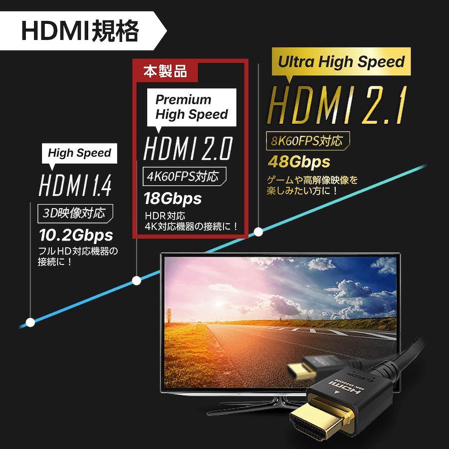 最大4K/60Hzの解像度に対応したHDMIケーブルです。High Speed HDMI Cable with Ethernet認証済みで、映像信号と音声信号に加え、100Mbpsのイーサネット通信を実現します。