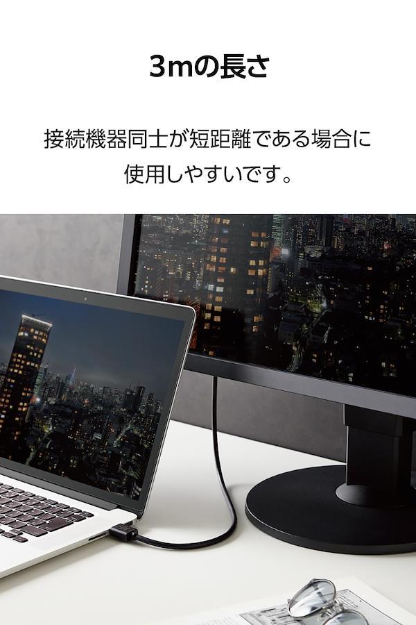 ■対応機種:HDMI(タイプA・19ピン)側:HDMI入力端子を持つ液晶テレビ、プラズマテレビ、プロジェクター等、HDMI(タイプA・19ピン)側:HDMI出力端子を持つAV機器、ゲーム機等 ■規格:Premium High Speed HDMI Cable with Ethernet (HDMI 2.0)認証 ■コネクタ形状1:HDMIプラグ(タイプA・19ピン) ■コネクタ形状2:HDMIプラグ(タイプA・19ピン) ■ケーブルタイプ:スタンダード ■伝送速度:18Gbps ■対応解像度:最大4K(3840×2160px)/60Hz ■シールド方法:3重シールド ■プラグメッキ仕様:金メッキ ■ケーブル長:約3m ※コネクター含まず ■ケーブル径:約6.0mm ■カラー:ブラック ■パッケージ形態:袋+ステッカー ■環境配慮事項: EU RoHS指令準拠(10物質)、簡易パッケージ