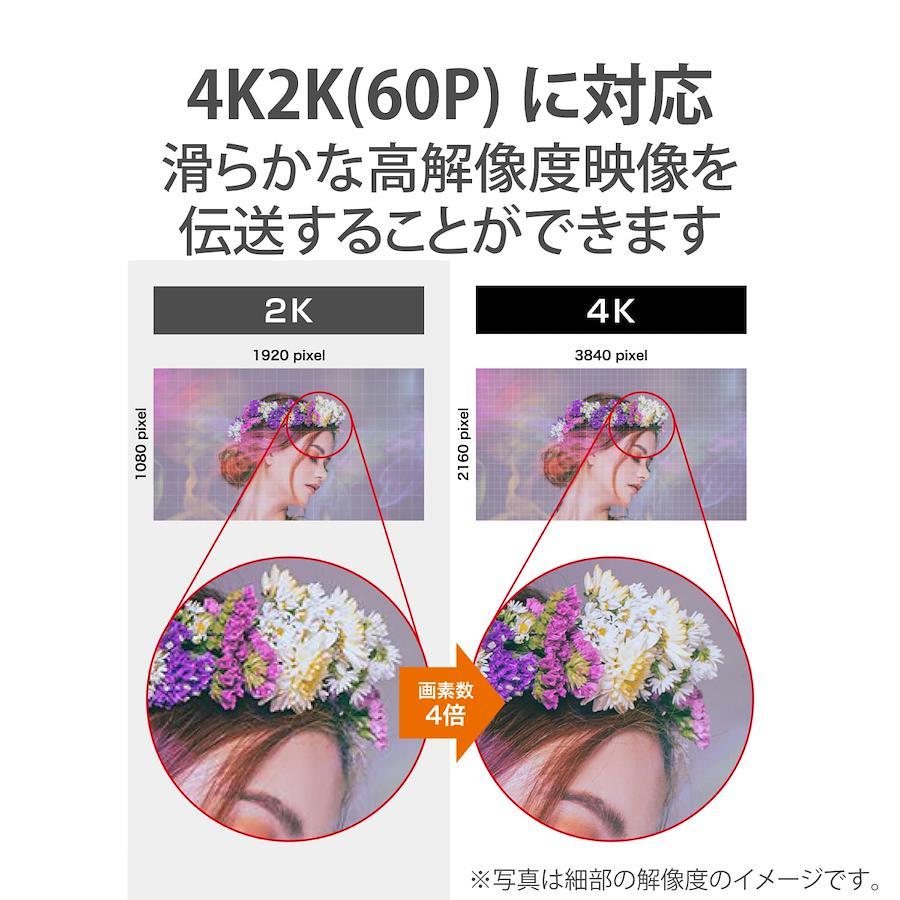 4K2K(60P)に対応し、滑らかな高解像度映像を伝送することができます。