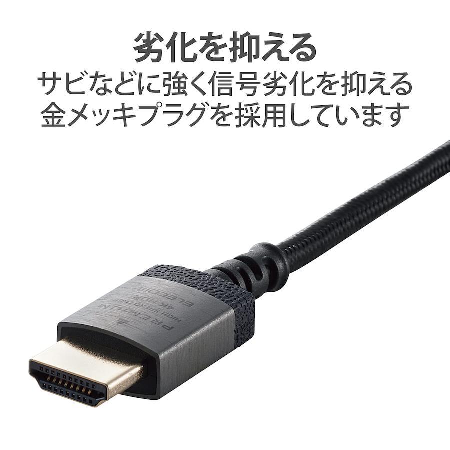 ■ 18Gbpsの高速伝送で高画質映像と音声を忠実に伝送できるPremium HDMI Cable規格認証済みイーサネット対応Premium HDMIケーブルのアルミコネクター&スリムナイロンメッシュタイプです。