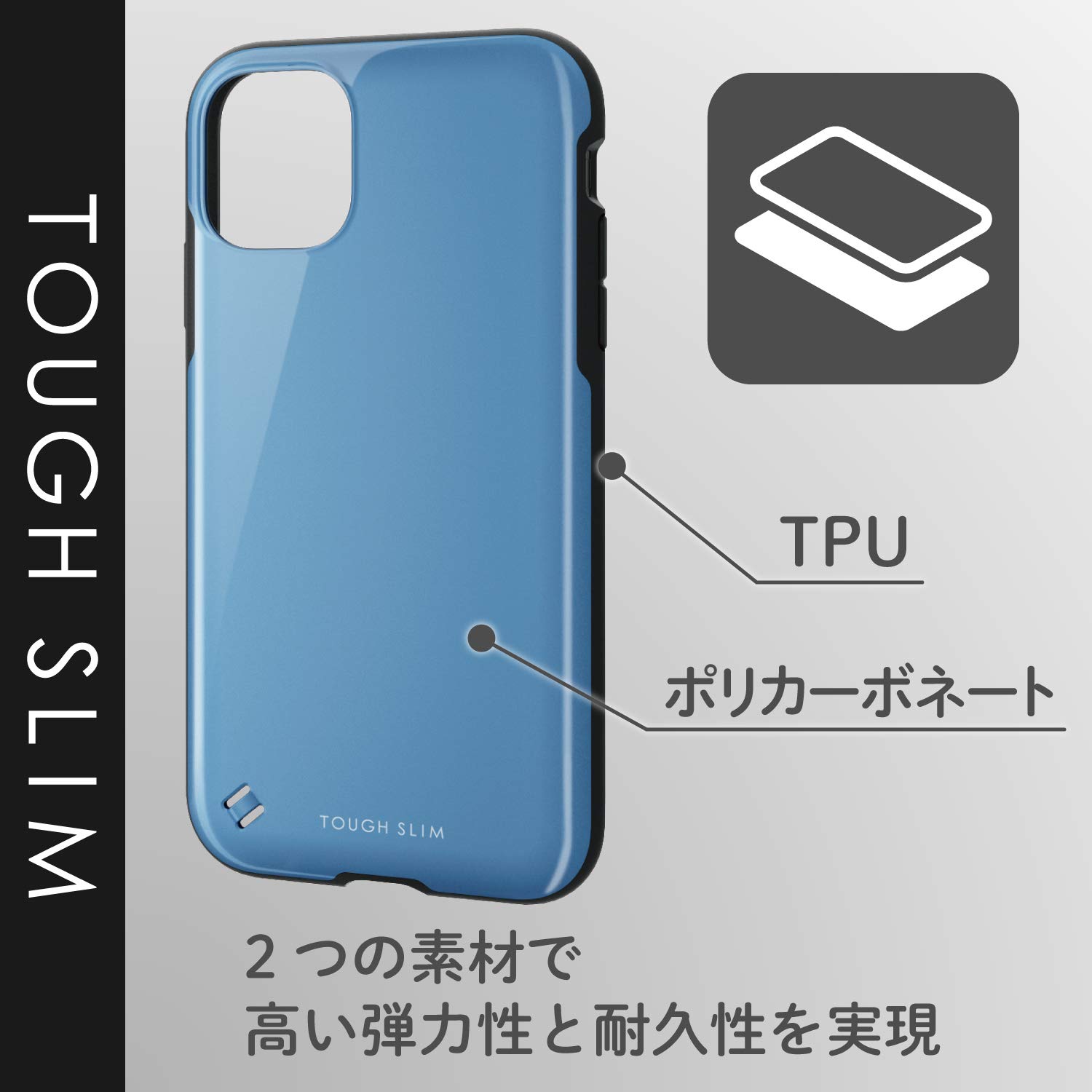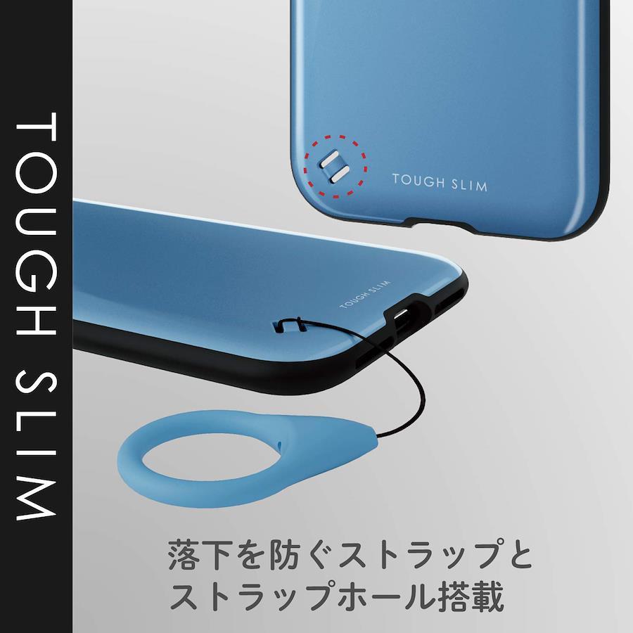 対応機種:iPhone 11全周に配置した独自設計のエアクッションが効率的に衝撃を吸収するiPhone 11用TOUGH SLIMケースです。2種の素材を特殊成形し強靱な耐久性としなやかな弾力性を合わせ持ったケースです。ケース内側にハニカム構造を採用することで、耐衝撃性の向上と軽量化を実現しています。落下防止に役立つ専用シリコンストラップが付属しています。