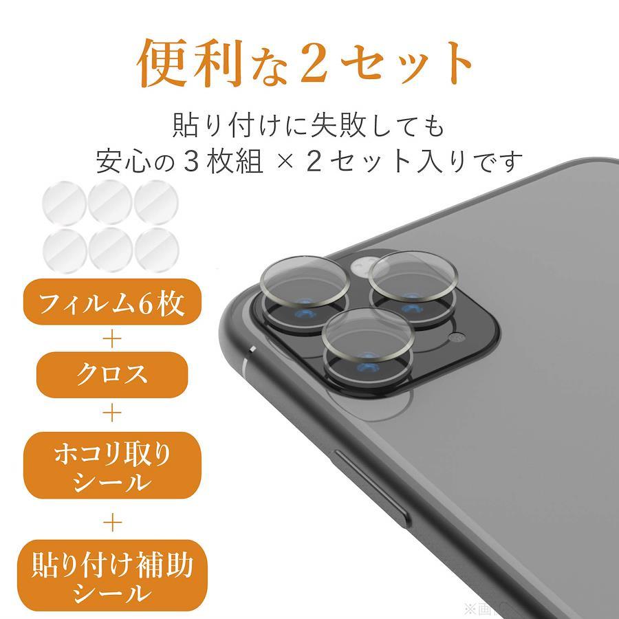 【 仕様 】■ 対応機種:iPhone 11 Pro/11 Pro Max■ セット内容:カメラレンズ保護フィルム(ガラスコート衝撃吸収仕様)3枚×2セット、ホコリ取りシール×1、クリーニングクロス×1、貼り付け補助シール■ 材質:接着面:シリコン、外側:ガラス、PET