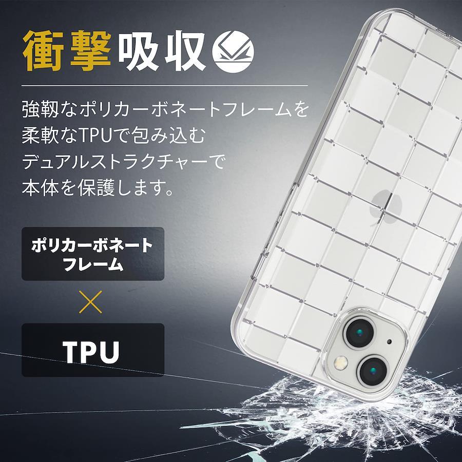 【 説明 】■ 強じんな耐久性としなやかな弾力性を合わせ持ったTPU(熱可塑性ポリウレタン)素材を使用した、ケース背面にダイヤモンドカットデザインが輝くiPhone 13用ソフトケースです。■ ケース背面に輝く市松模様をデザインしています。■ シリコン素材より強く耐久性に優れ、プラスチック素材よりしなやかな弾力性を持つTPU(熱可塑性ポリウレタン)素材を使用しています。■ ケースを装着したままで、純正の各種ケーブルの接続や写真撮影、ボタンの操作が可能です。■ 背面カメラ周りを覆い、カメラへの傷を防ぐ、カメラレンズ保護設計です。■ 本製品はワイヤレス充電に対応しています。※お使いの充電器や環境によっては正常に充電できない場合があります。※MagSafeには非対応です。