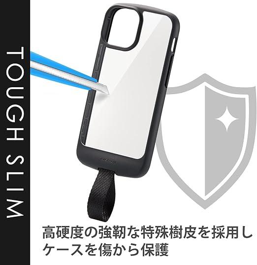 全周に配置した独自設計のエアクッションが衝撃を吸収し、背面には高硬度の特殊樹脂を採用したフィンガーベルト付きiPhone 13 mini用TOUGH SLIM LITEケースです。