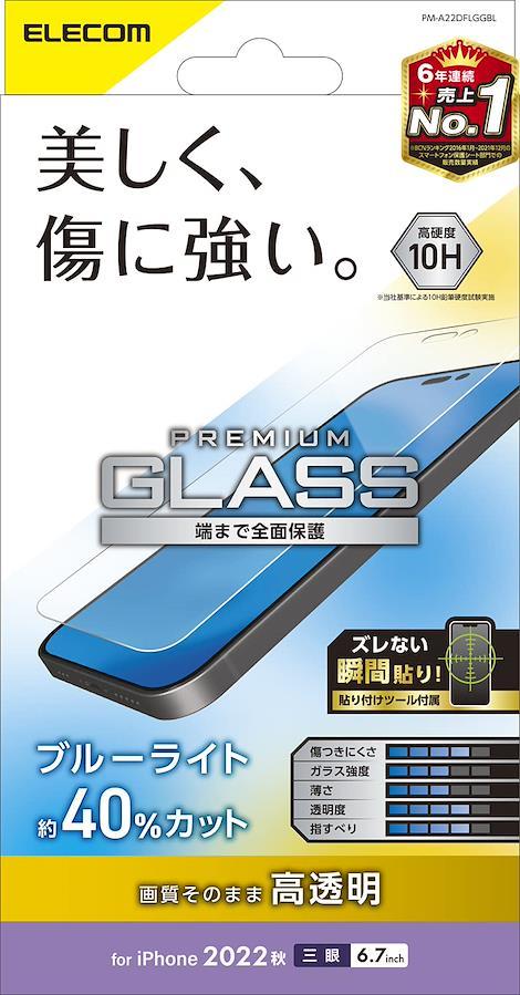 ELECOM iPhone 14 Pro Max Glass Film, Blue Light Cut, Tempered Glass, Surface Hardness 10H, Fingerprint Prevention, Shatterproof, Airless, Glossy