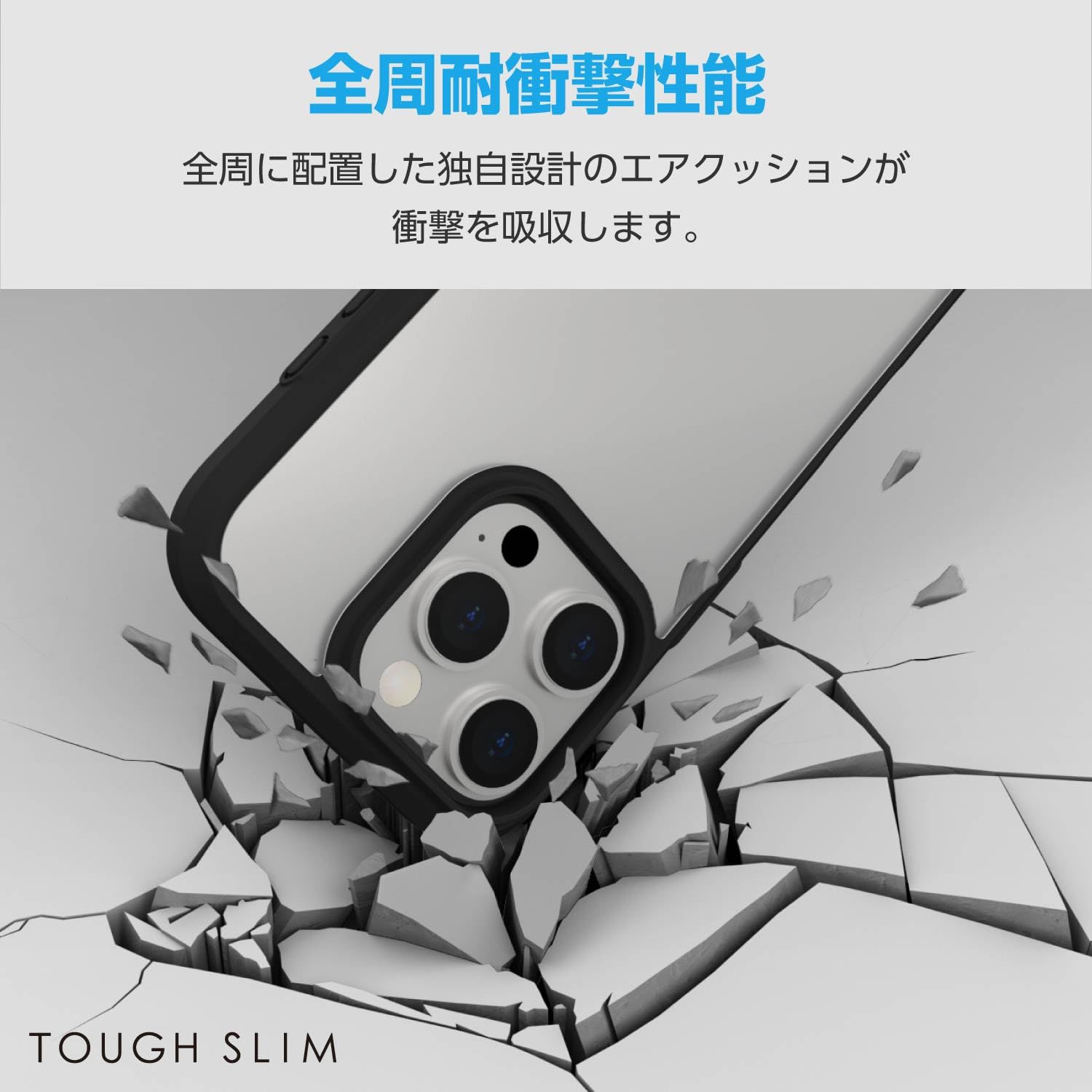 衝撃を吸収するエアークッションを全周に配置し、背面には傷に強く割れにくいポリカーボネート素材を採用しました。付属の画面保護のガラスフィルムとケースで、端末を360度全面保護するTOUGH SLIMケースです。