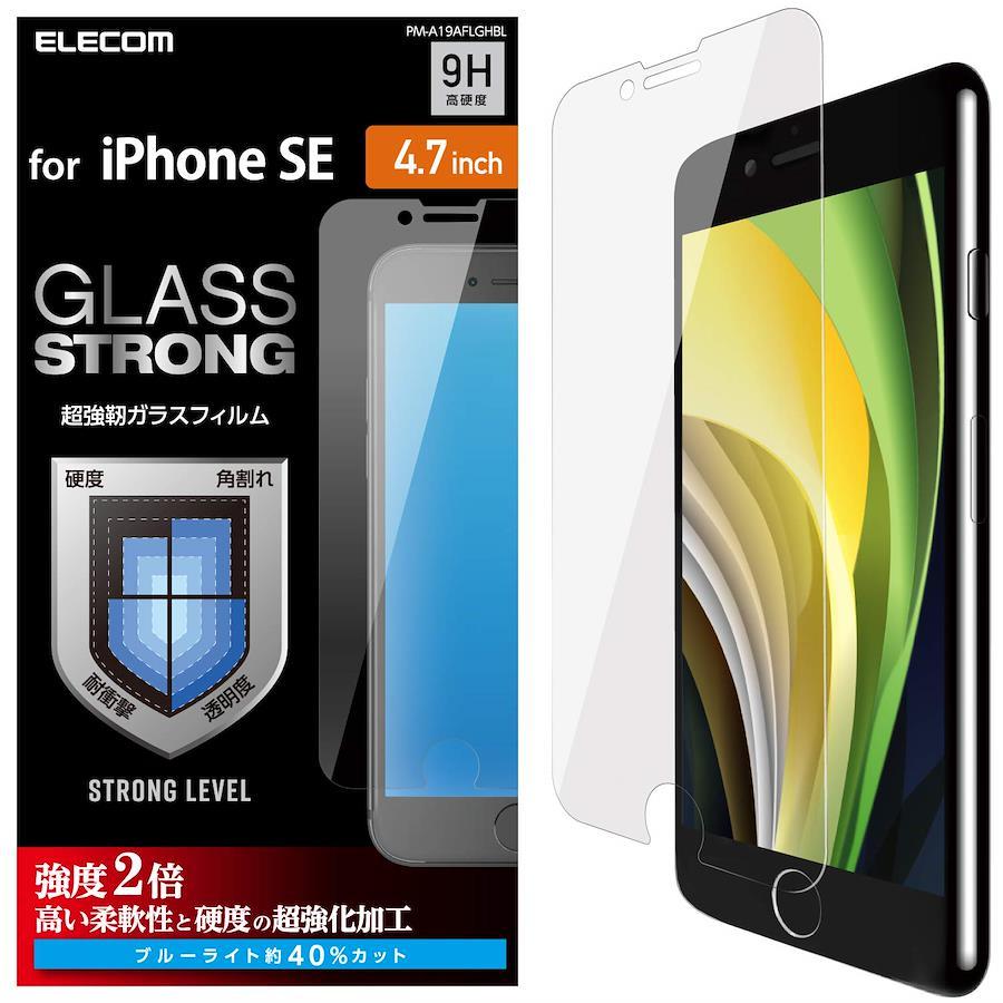 【 説明 】■ 高い柔軟性と硬度の二次強化加工により、2倍の強度を実現するiPhone SE 第2世代、iPhone 8、iPhone 7、iPhone 6s、iPhone 6用ガラスフィルム/超強化のブルーライトカットタイプです。※PM-A17XFLGGとの比較■ なめらかな指すべりを実現するリアルガラスです。■ 表面硬度9Hの日本メーカー製強化ガラスを採用しており、保護ガラス表面のキズを防止します。※表面硬度は実力値です。■ 指すべりが長持ちする特殊加工を施しています。■ 指の引っかかりが少ないラウンドエッジ加工を施しています。■ ARコートを施しており、従来品よりも透明度が向上しています。※PM-A17XFLGGとの比較■ 指紋汚れを付きにくくする指紋防止コーティングを施しています。■ LED液晶ディスプレイが発する光の中の青い部分「ブルーライト」を約40%カットします。※ ブルーライトは目の角膜や水晶体で吸収されずに網膜まで到達し、網膜の機能低下を引き起こす場合があると言われています。■ ブルーライトを効率的にカットするだけでなく、色調をできるだけ変えずに自然に見えるようフィルムを設計しています。■ 貼り付け面にシリコン皮膜をコーティングし、接着剤や両面テープを使わずに貼り付け可能な自己吸着タイプです。貼りやすく、貼り直しも可能です。■ 端末の形状に合わせたサイズにカット済みなので、パッケージから取り出してすぐに使用可能です。※液晶画面の端が湾曲しているため、湾曲部分は覆わない仕様にしています。■ フィルムを貼ったままでも本体操作ができるタッチスクリーン入力に対応しています。■ 特殊な飛散防止設計により、万一割れてしまった際にもガラス片が飛散することなく、高い安全性を実現しています。