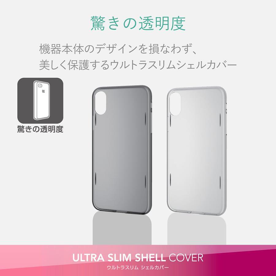 ■極めたカバー設計と極薄0.6mmで、カバーを付けていないかのような装着感を実現したiPhone X用ウルトラスリムシェルカバーです。※最薄部 ■株式会社クラレの「パラペット」をベースにエレコムが独自配合した「NEO AQUA」を採用し、まるでカバーを付けていないかのような装着感を実現しています。 ■スピーカーやボタン周りまでカバーで覆う極み設計です。 ■高い透明度で、端末のデザインを隠さずに保護します。 ■カバー背面に凸型リブ設計を施し、背面カメラや背面のキズ付きを防ぎます。