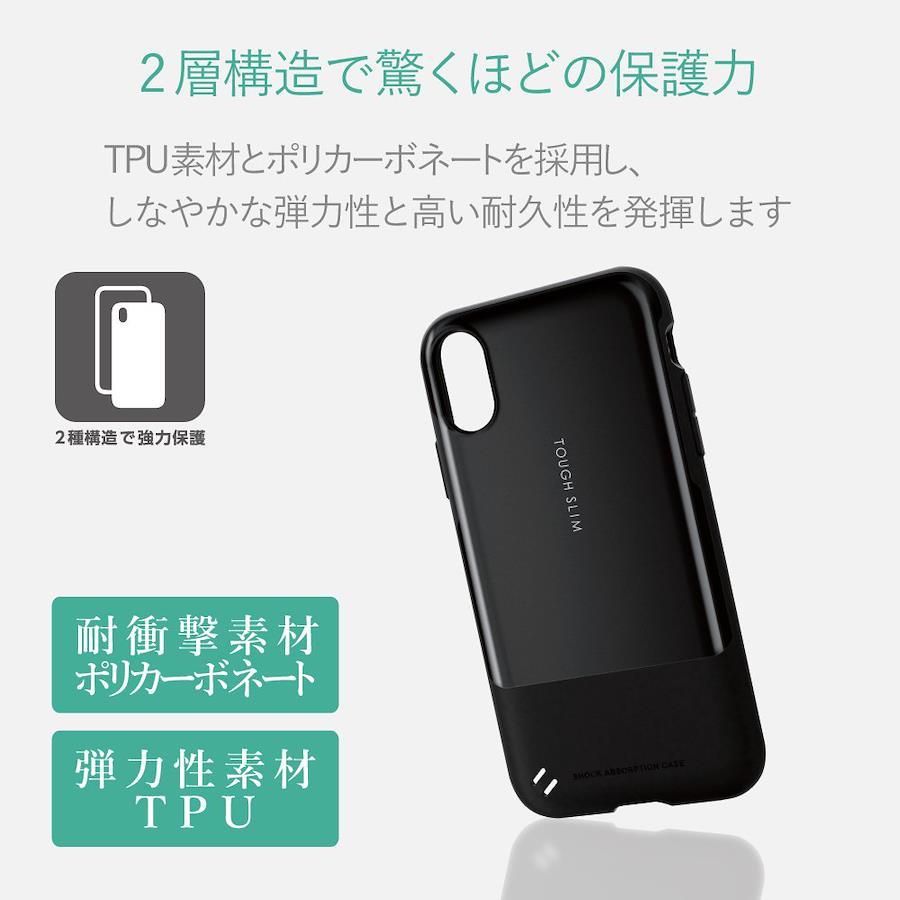 エレコム iPhone X ケース カバー 衝撃吸収 【 落下時の衝撃から本体を守る 】 TOUGH SLIM ストラップ付 ブラック PM-A17XTSBK
