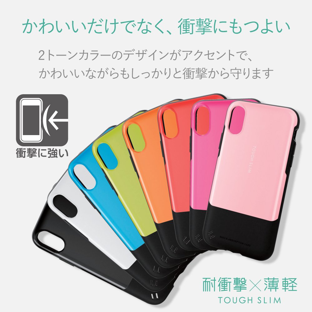 【対応機種】:iPhone X全周に配置した独自設計のエアクッションが効率的に衝撃を吸収するiPhone X用TOUGH SLIMケースです。2種の素材を特殊成形し強靱な耐久性としなやかな弾力性を合わせ持ったケースです。ケース内側にハニカム構造を採用することで、耐衝撃性の向上と軽量化を実現しています。デザインアクセントとしてかわいい2トーンカラーを採用しています。