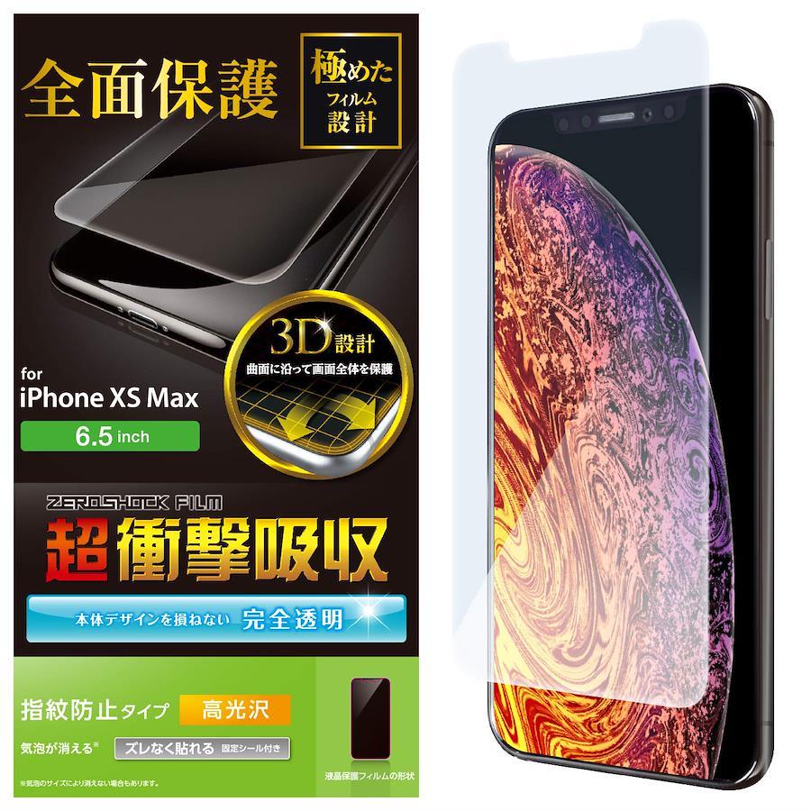 ELECOM iPhone XS Max Film, Full Coverage, Shock Absorption, Transparent, Glossy, PM-A18DFLFPRG