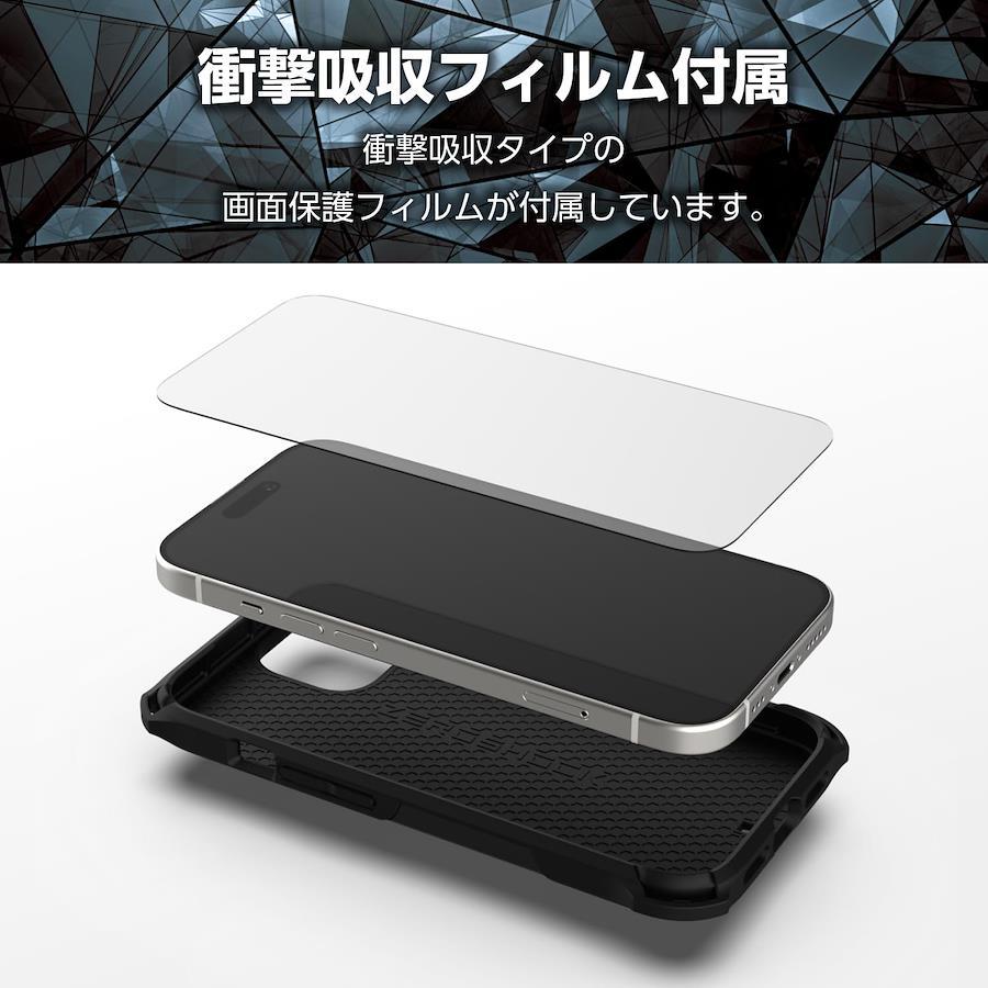 【仕様】■対応機種:iPhone 15 Plus■セット内容:ケース本体×1、画面保護フィルム(衝撃吸収)×1■材質:ケース本体:TPU(熱可塑性ポリウレタン)、ポリカーボネート、画面保護フィルム:PET・ポリウレタン(吸着面:シリコン)■カラー:ブラック