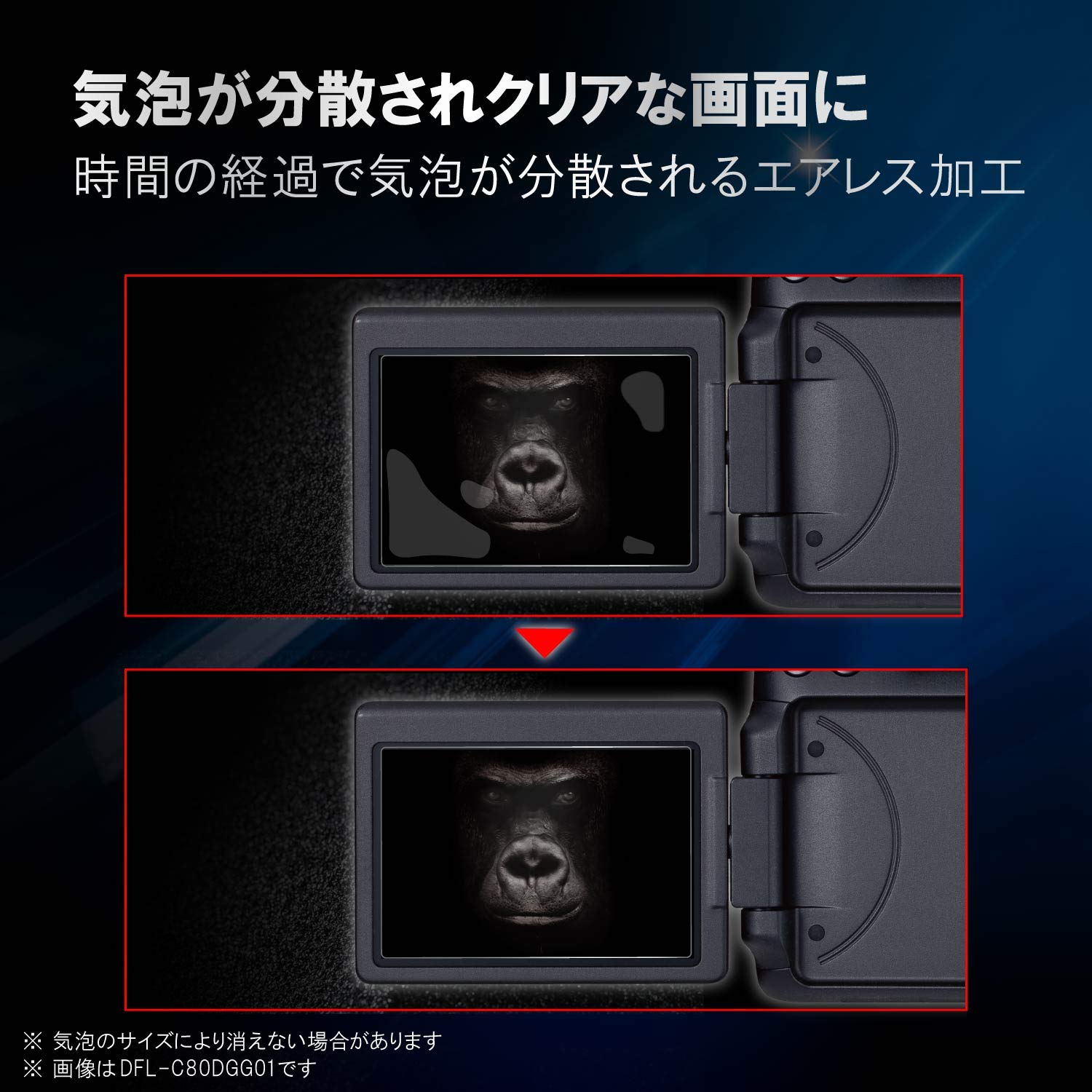 ■ 超極薄タイプの液晶保護ガラスなのでバリアングル式液晶モニタの開閉にも対応します。