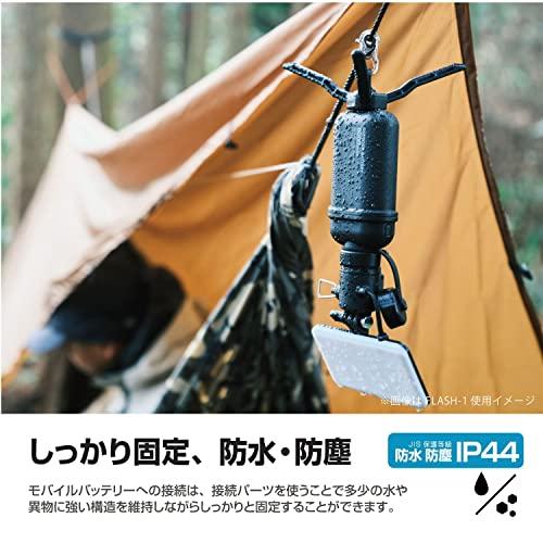 モバイルバッテリーへの接続は、接続パーツを使うことで水や異物に強い構造を維持しながらしっかりと固定することができます。