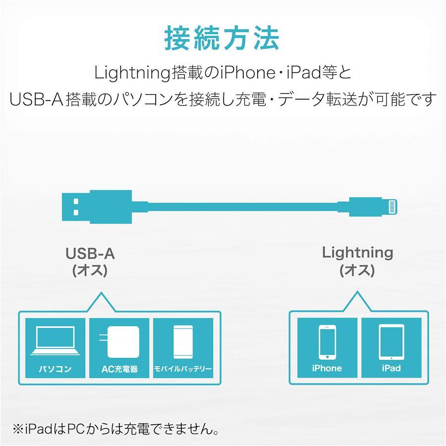 USB(Aタイプ)のインターフェイスを持つパソコンに、Lightningコネクタを持つiPhoneやiPod、iPadを接続し、充電やデータ通信ができるUSBケーブルです。※iPadはパソコンからは充電できません。
