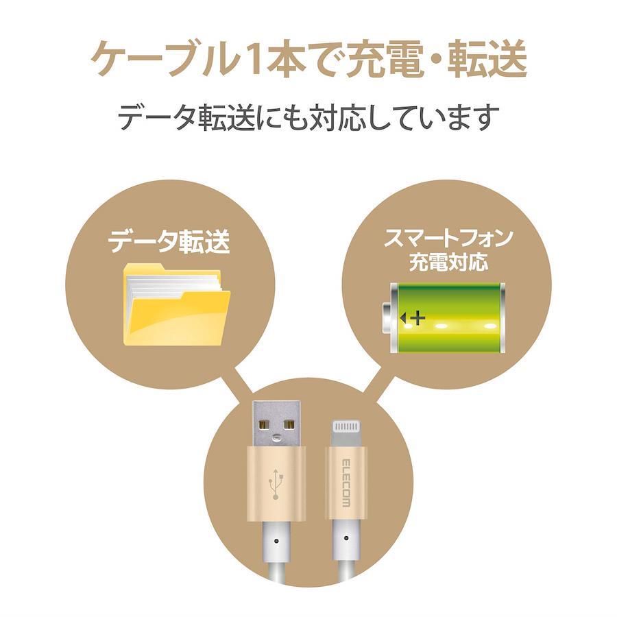 iPhoneやiPod、iPadなどのLightning端子搭載機器とパソコンを接続し、充電・データ通信が可能なLightningケーブルです。※iPadはパソコンからは充電できません。