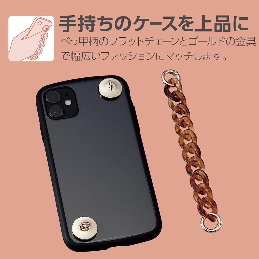 べっ甲柄のフラットチェーンとゴールドの金具で上品な印象です。カジュアルやエレガントなど幅広いファッションスタイルにマッチ。お手持ちのスマホケースを自分好みにアレンジできます。