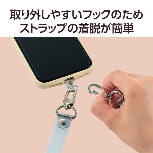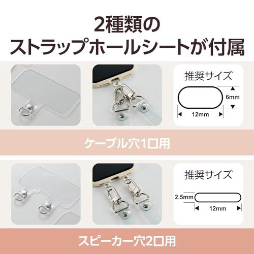 ■ケースにストラップホールがなくても、付属のストラップシート(透明)をスマートフォンとケースの間に挟むだけで使用でき、取り外しも簡単です。
