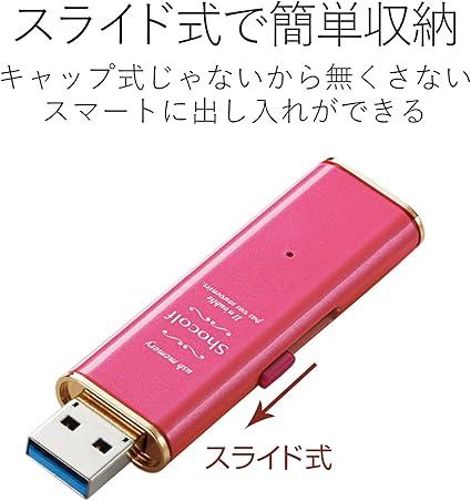 ELECOM MF-XWU332GPND 32GB Sliding USB Flash Drive, USB 3.0 Compatible, Windows 10 Compatible, Mac Compatible, Raspberry Pink